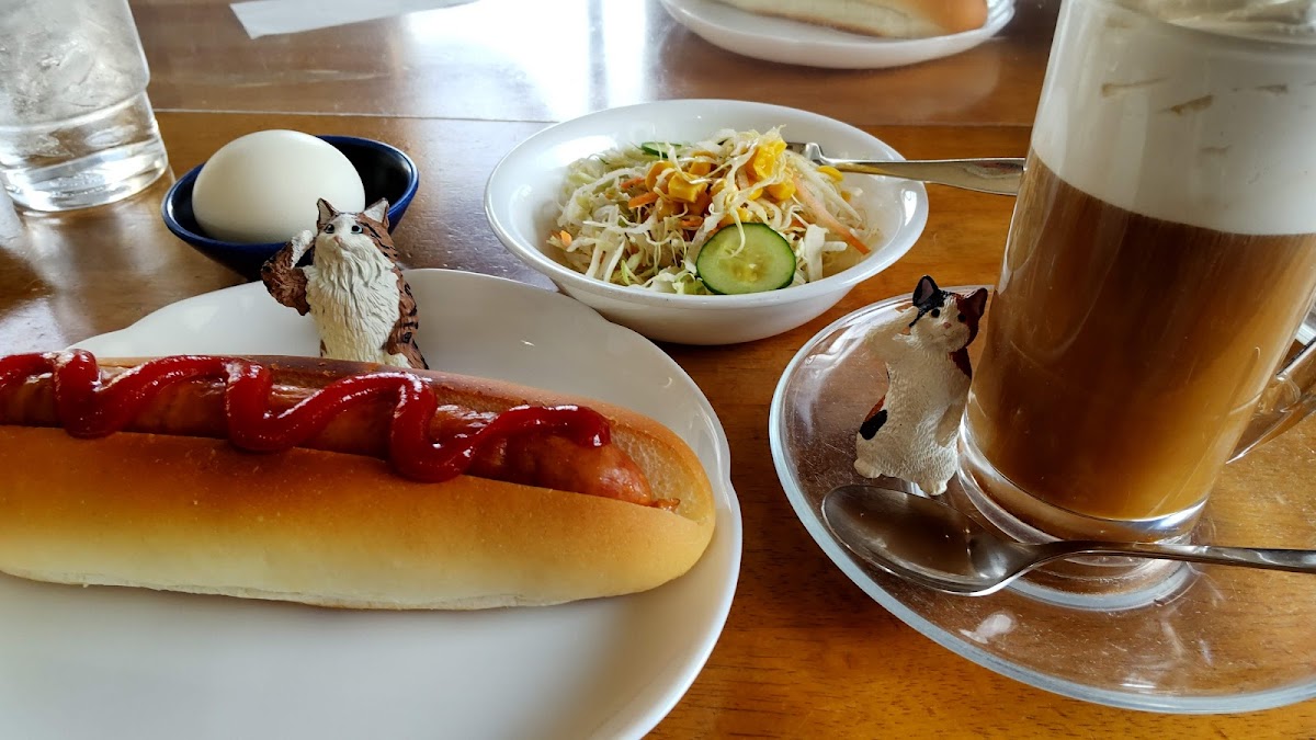 At Cafe Rest RR, the morning menu is the star of the show. Customers rave about the morning service that includes a variety of options like the savory hot dog and fresh salad, both delightful additions for a perfect start to your day. Diners have commented on the refreshing green shiso dressing drizzled over the salad, which elevates the dining experience with its unique flavor profile. A fan favorite among regulars is the half toasted bread served with boiled eggs, which can be customized with a hint of sweet ogura bean paste—a classic Japanese delicacy that complements the meal beautifully.